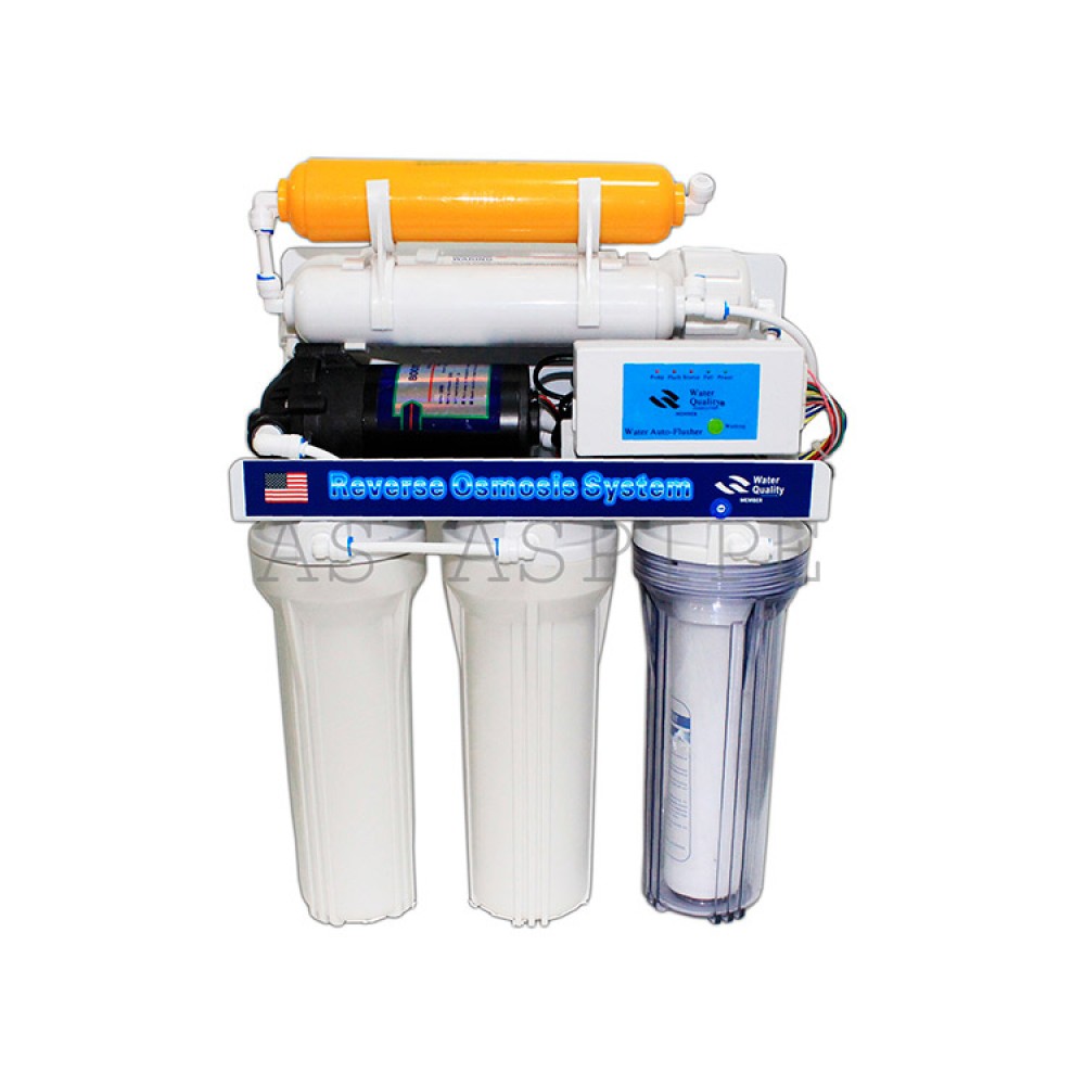 Комлектация:насос осмоса,мембрана, фильтр биологической очистки,3 фильтра очистки, кран подачи воды,ключ 6 степеней очистки